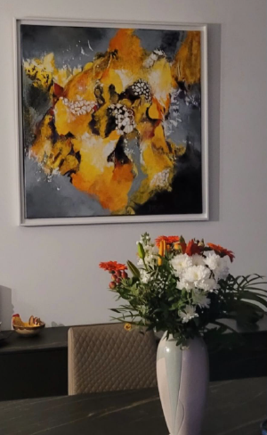 « L’artiste absolument charmante, est venue à domicile pour mettre les tableaux en situation. J’ai vraiment trouvé cela exceptionnel. J’ai beaucoup de compliments quant aux œuvres que j’ai choisies. Je suis ravie. »